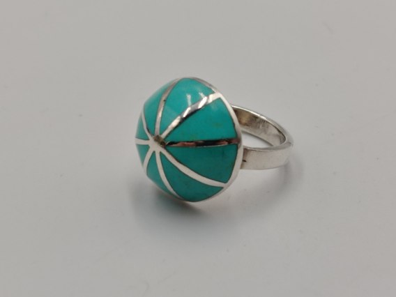 Dzisiaj w ofercie: piękny, stary, autorski, ciekawy, srebrny, damski pierścionek KOPUŁKA z dodatkiem turkusu, wykonany ze srebra 925, w rozmiarze 15 / 16 - biżuteria VINTAGE / RETRO.