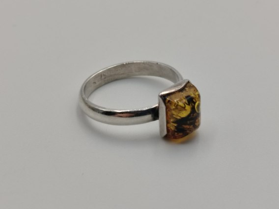 Dzisiaj w ofercie: piękny, stary, autorski, ciekawy, srebrny, damski pierścionek z BURSZTYNEM, wykonany ze srebra próby 925, w rozmiarze 11 - biżuteria VINTAGE