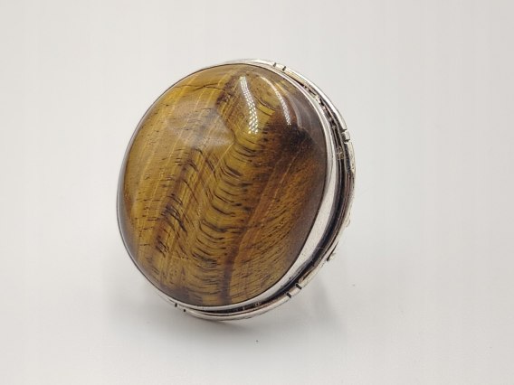 nazwa: piękny, duży, stary, bajeczny, autorski, ciekawy, srebrny, damski pierścionek " TYGRYSIE OKO ", wykonany ze srebra próby 925, w rozmiarze 20 - biżuteria VINTAGE