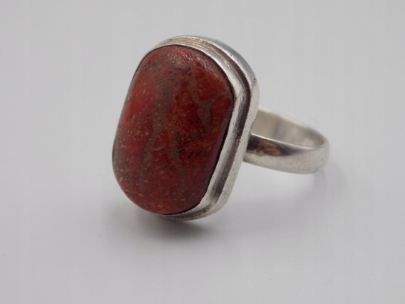 Dzisiaj w ofercie: piękny, stary, autorski, ciekawy, srebrny, damski pierścionek z KORALOWCEM, wykonany ze srebra próby 925, w rozmiarze 20 - biżuteria VINTAGE
