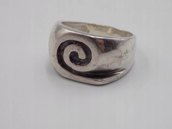 Dzisiaj w ofercie: piękny, stary, autorski, ciekawy, srebrny, damski pierścionek wzór Ślimak, wykonany ze srebra próby 925, w rozmiarze 12 - biżuteria VINTAGE