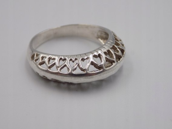 wzór / motyw: pierścionek srebrny, ażurowy z sercami