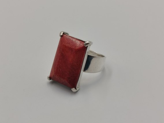 Dzisiaj w ofercie: piękny, stary, autorski, ciekawy, srebrny, damski pierścionek z dodatkiem koralowca, wykonany ze srebra próby 925, w rozmiarze 10 - biżuteria VINTAGE