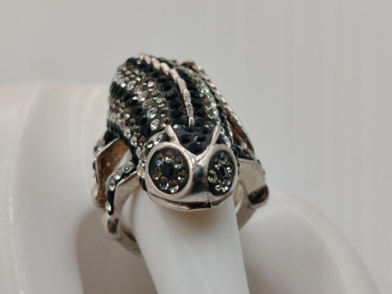 nazwa: bajeczny, piękny, stary, ciekawy, autorski, srebrny pierścionek z dodatkiem cyrkonii - KAMELEON - wykonany ze srebra próby 925, w rozmiarze 19 - biżuteria VINTAGE