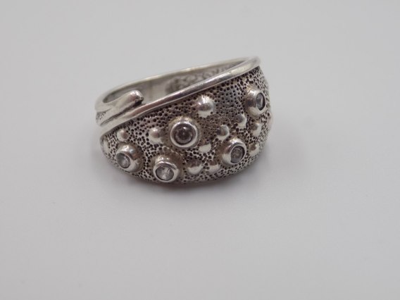 Dzisiaj w ofercie: piękny, stary, ciekawy, damski, autorski, srebrny pierścionek / obrączka - CYRKONIE - wykonana ze srebra, w rozmiarze 13 / 14 - biżuteria VINTAGE
