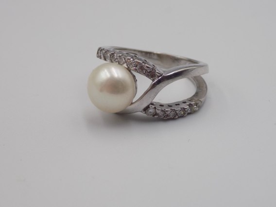 wzór / model: pierścionek damski ażurowy z dodatkiem perły i cyrkonii