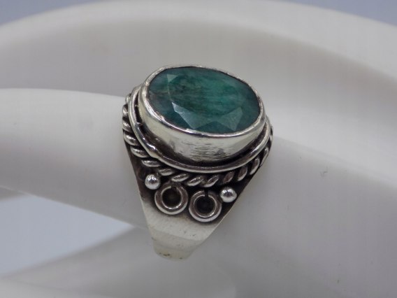 Dzisiaj w ofercie: piękny, stary, autorski, ciekawy, srebrny, damski pierścionek z SZMARAGDEM, wykonany ze srebra próby 925, w rozmiarze 19 - biżuteria VINTAGE