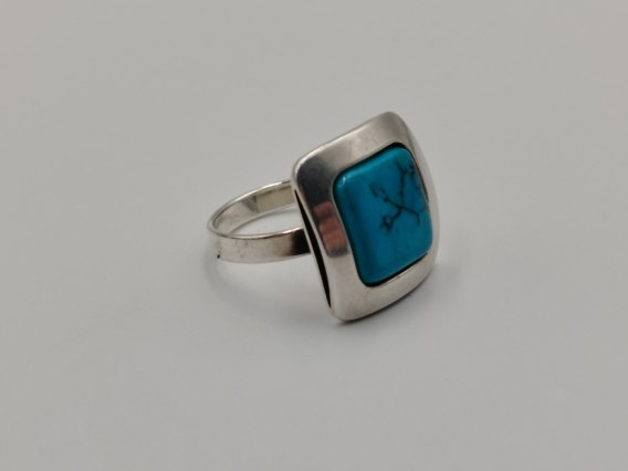 Dzisiaj w ofercie: piękny, stary, autorski, ciekawy, srebrny, damski pierścionek z dodatkiem turkusu, wykonany ze srebra próby 925, w rozmiarze 10 / 11 - biżuteria VINTAGE.